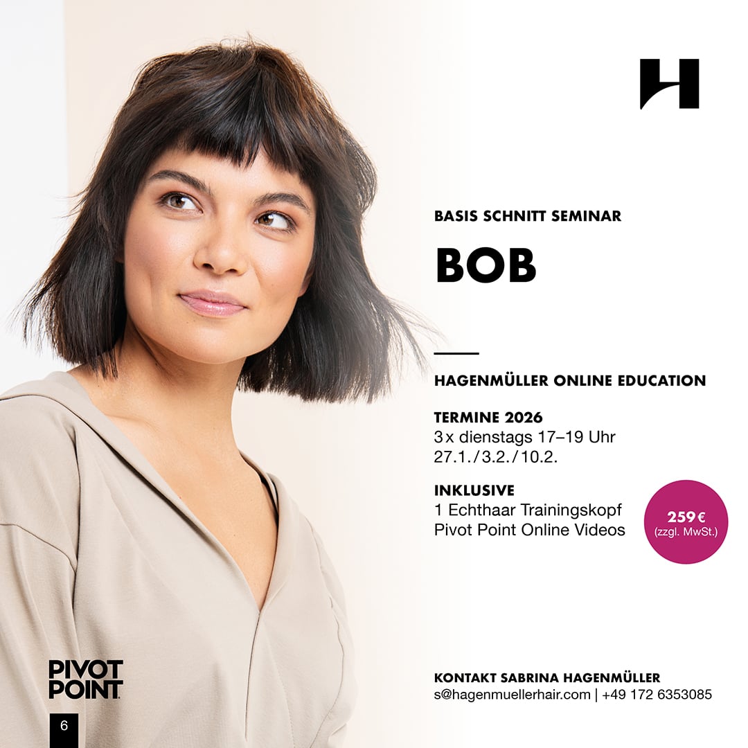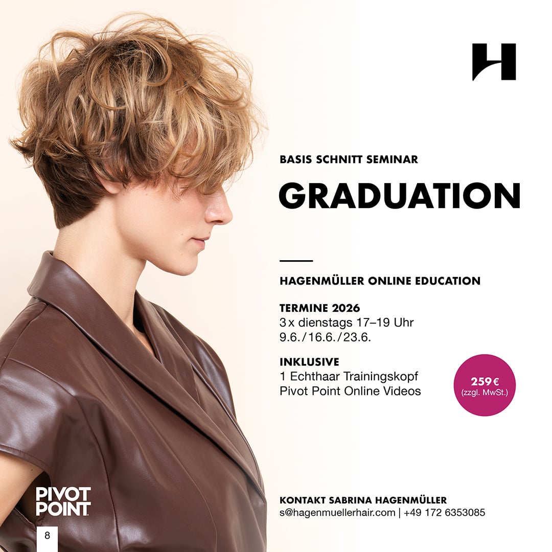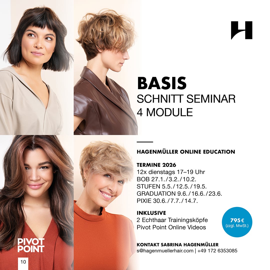 In 12 Trainings á 2 Stunden, lernst du 12 Haarschnitte nach der systematischen Methode von Pivot Point. Wir trainieren mit dir alle Varianten der vier Basishaarschnitte und vermitteln dir das Wissen, wie du das Haareschneiden verstehen, erklären und mit Sicherheit und Selbstbewusstsein umsetzen kannst.